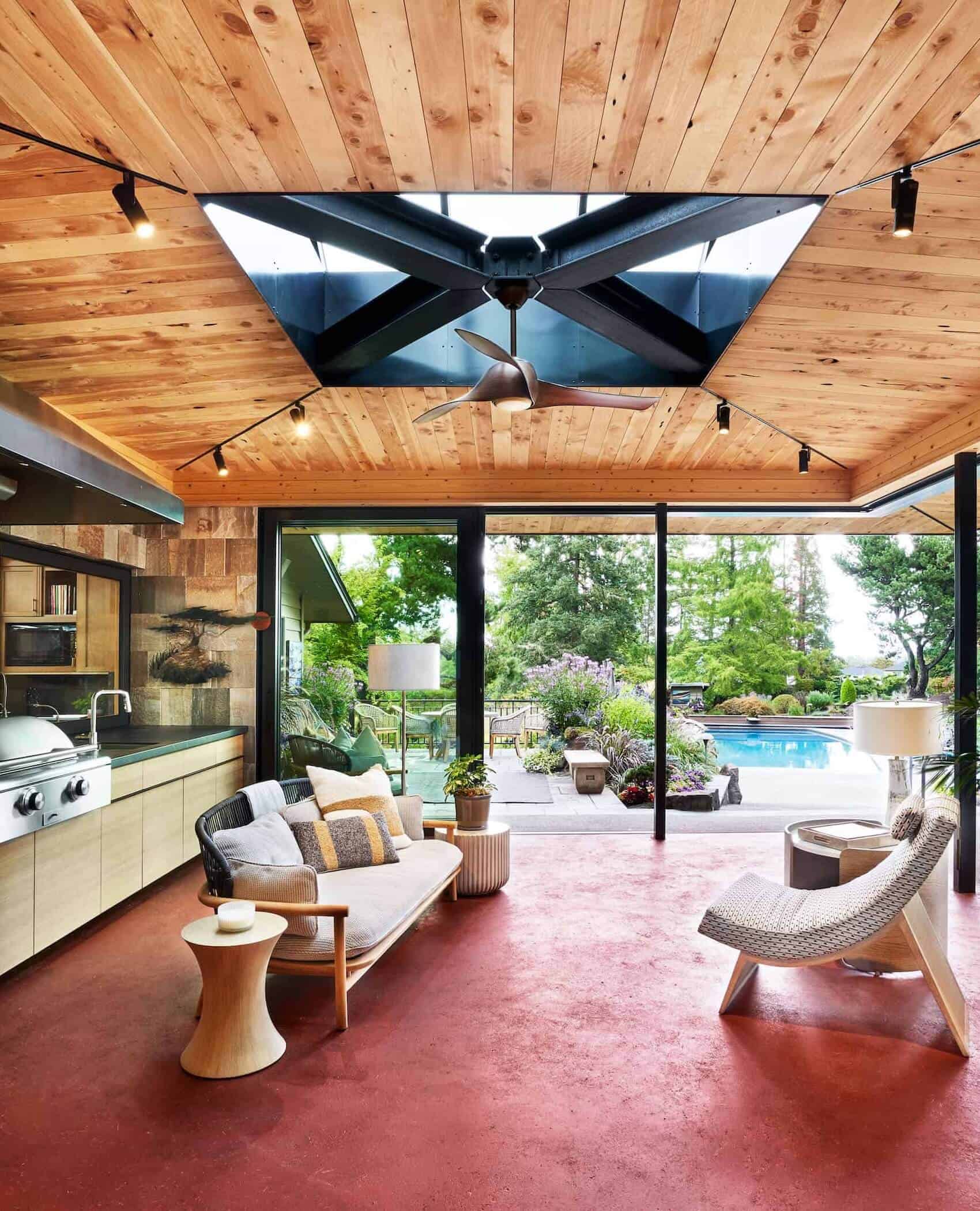 From its 13 helical earth anchors and concrete grade beams below ground to the 17-piece steel support skeleton and multi-sloped roof to the exactness of every finishing detail, we enjoyed the build almost as much as our clients love the inviting warmth of the finished space.